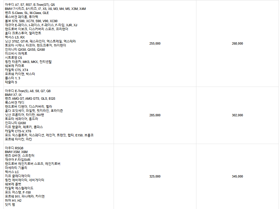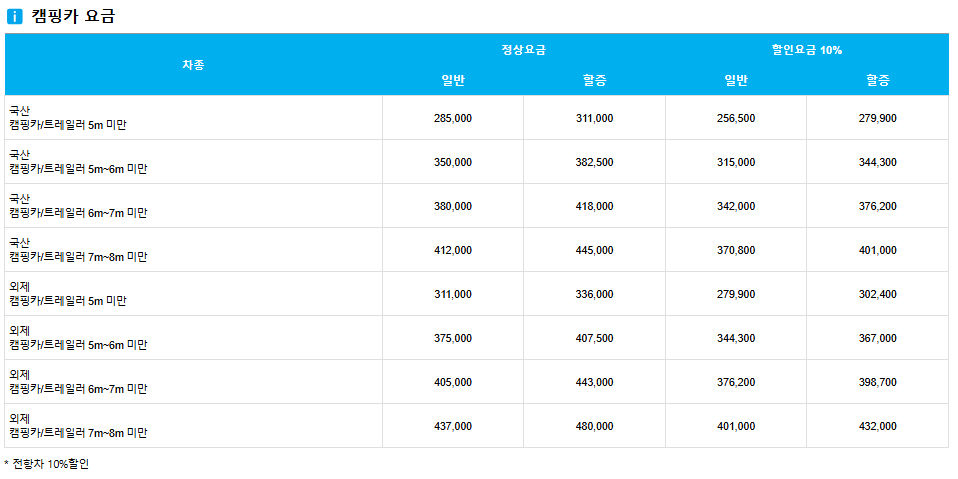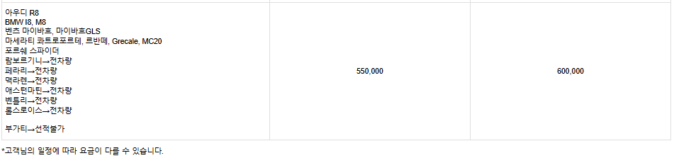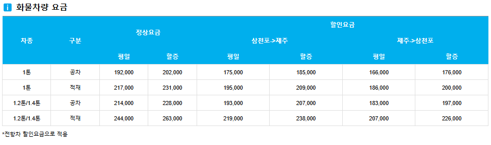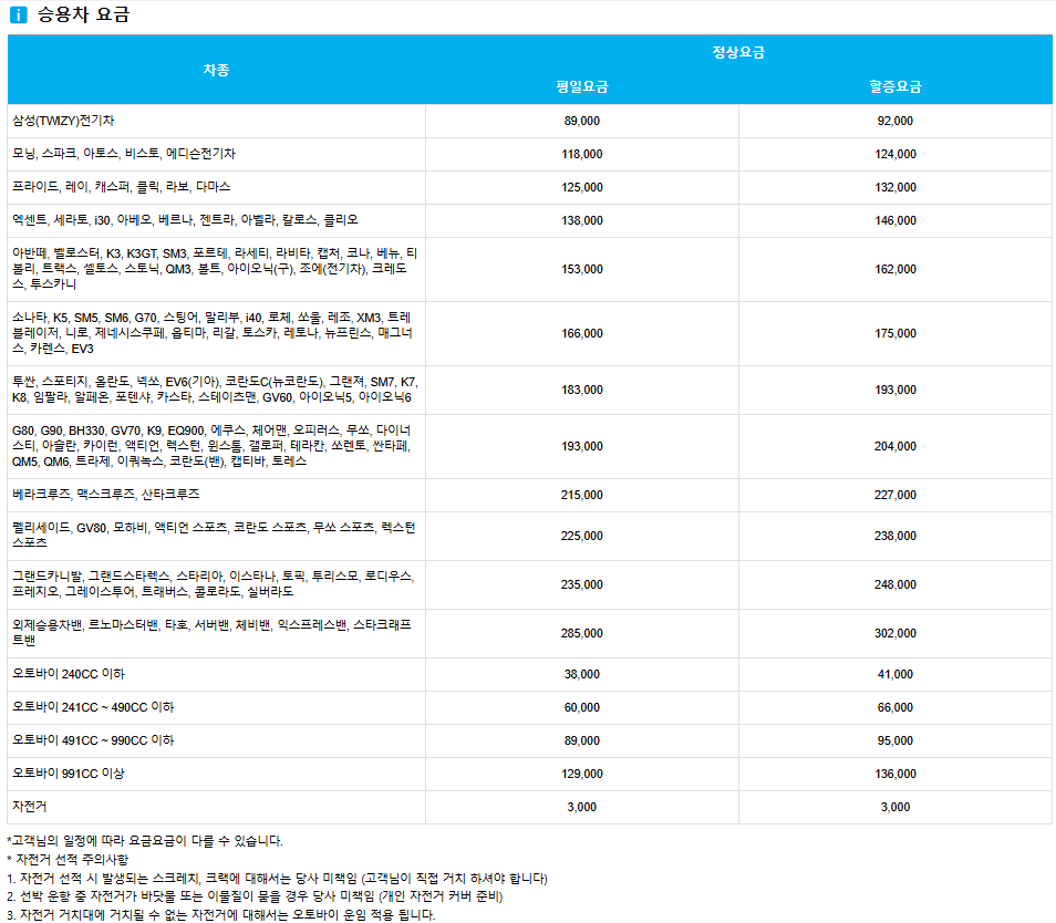 ※ 차량 크기와 배의 적재 상황에 따라 가격이 달라질 수 있습니다.