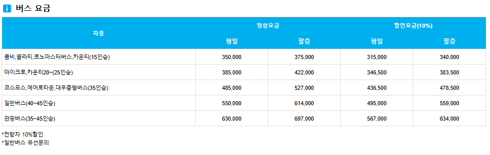 - 성수기에는 추가 요금이 발생할 수 있습니다.