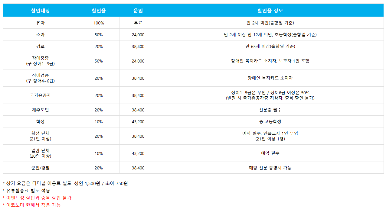 - 기상 악화 시 운항이 취소될 수 있으므로 미리 확인이 필요합니다.