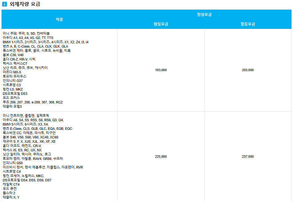- 외제차량 요금